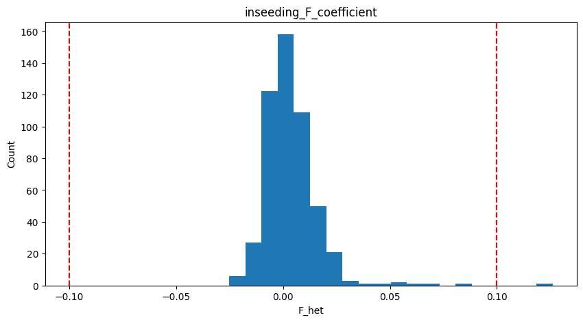然后,我们可以应用过滤器并删除高F_het的样本,以获得干净的数据集供以后使用。